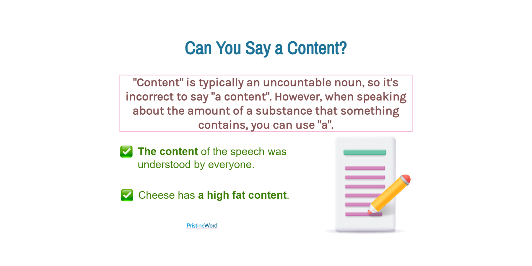 "Content" is typically an uncountable noun, so it's incorrect to say "a content".