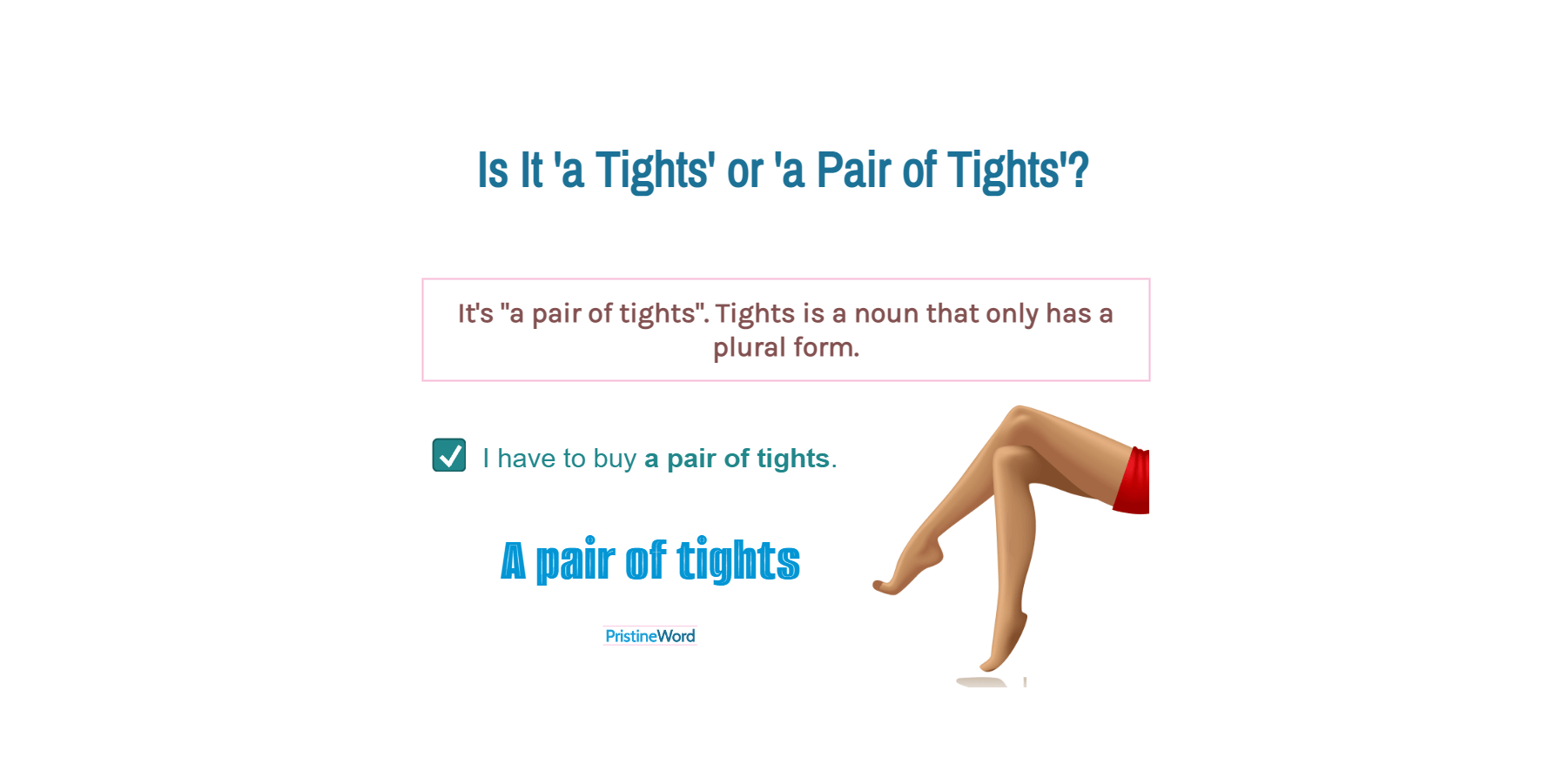 Be also aware that plural nouns, such as "tights", require a plural form of a verb. For example, we say "tights are" (not "tights is").