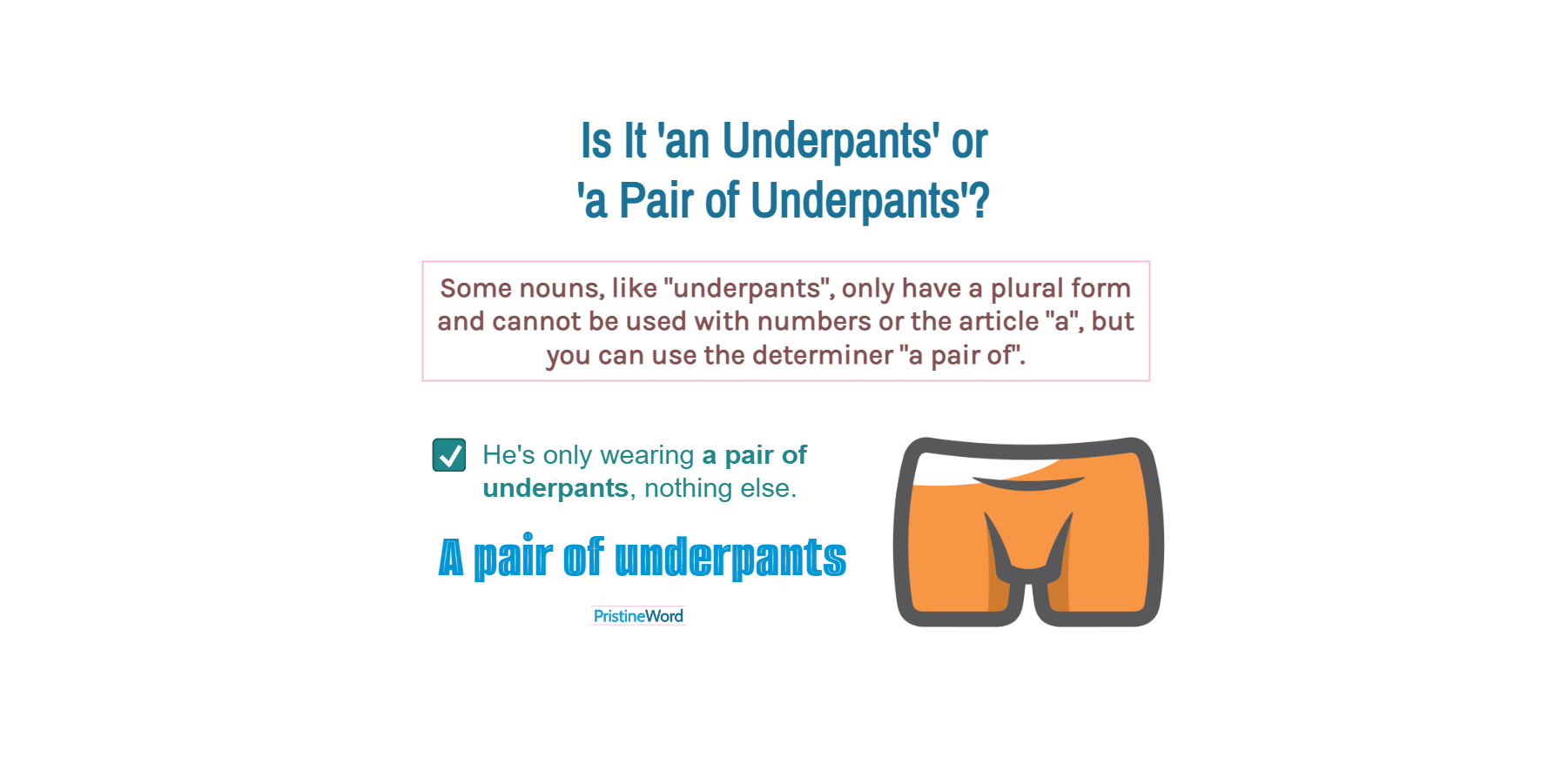 Some nouns, like "underpants", only have a plural form and cannot be used with numbers or the article a/an, but you can use the determiners "a pair of", "two pairs of", "three pairs of", etc. to count these items.