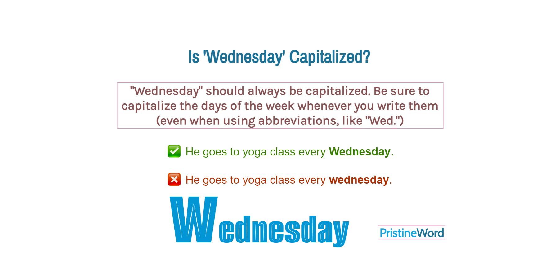 Why do we capitalize "Wednesday"? The days of the week are considered proper nouns in English. Capitalization helps us identify nouns as unique entities.
