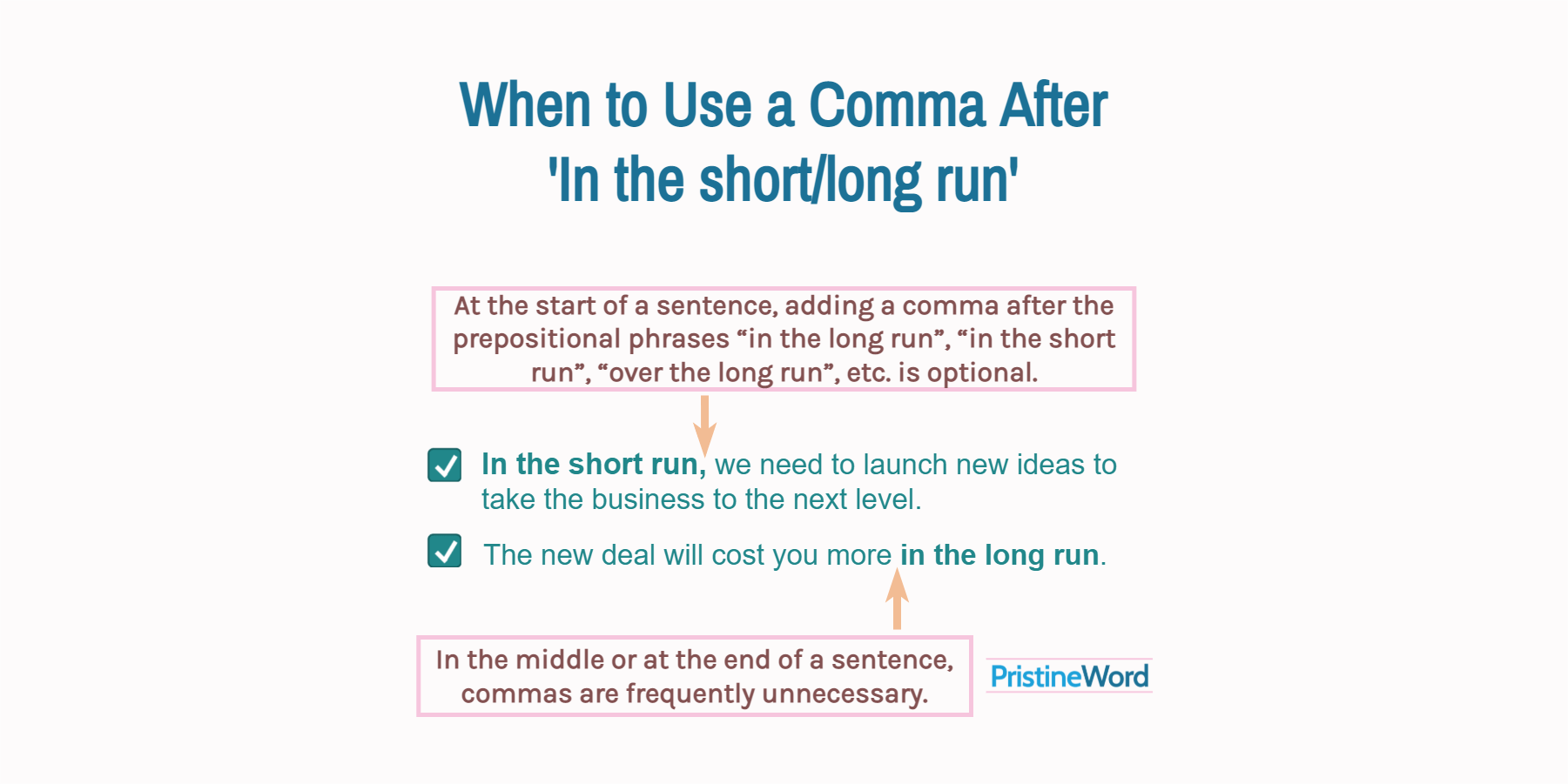 Follow the same comma strategy with the expressions "in the short term" and "in the long term".