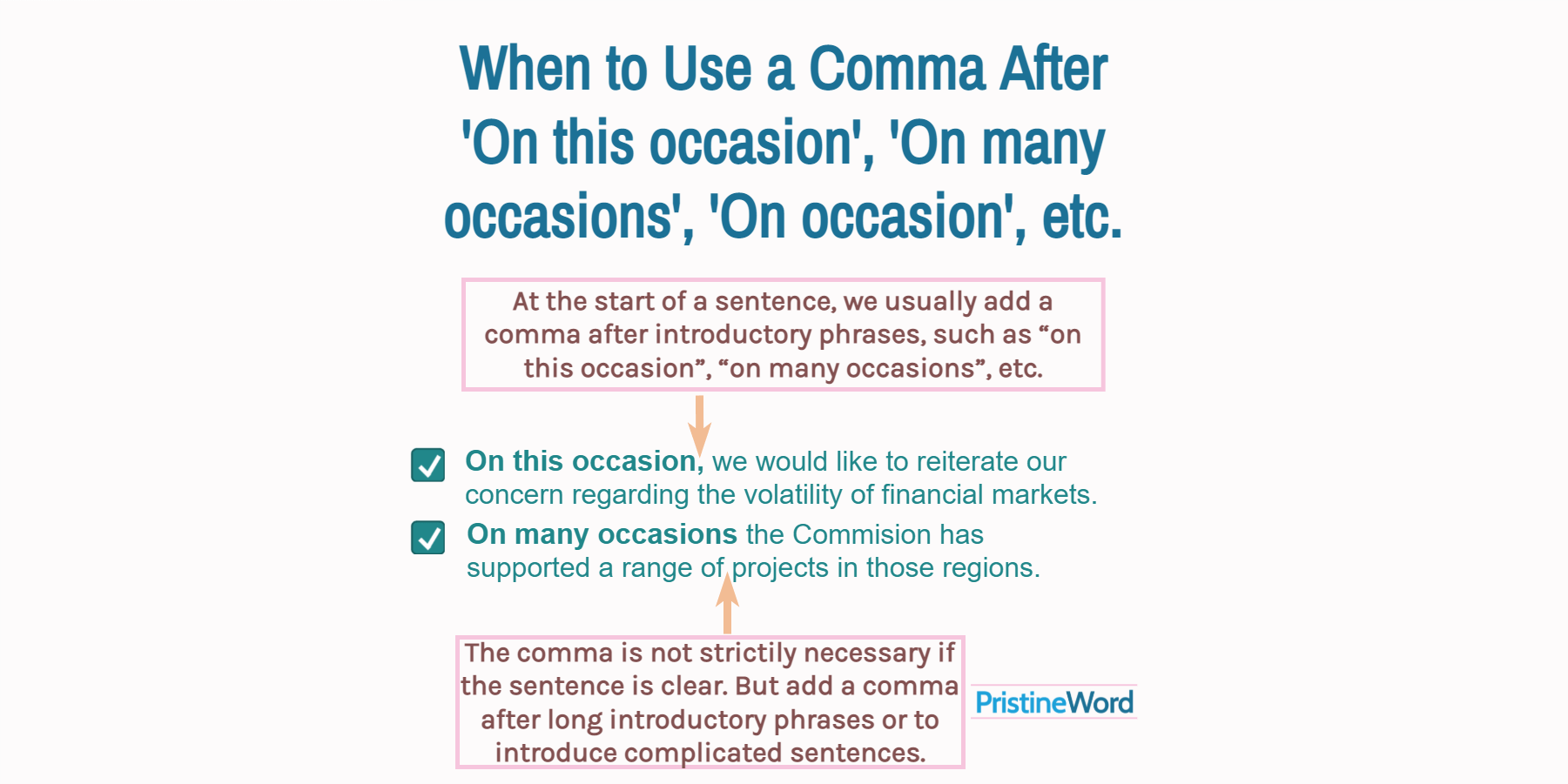 At the start of a sentence, we usually add a comma after introductory phrases, such as “on this occasion”, “on numerous occasions”, “on many occasions”, “on occasion”, “on a number of occasions”, “on the occasion of...”, etc.