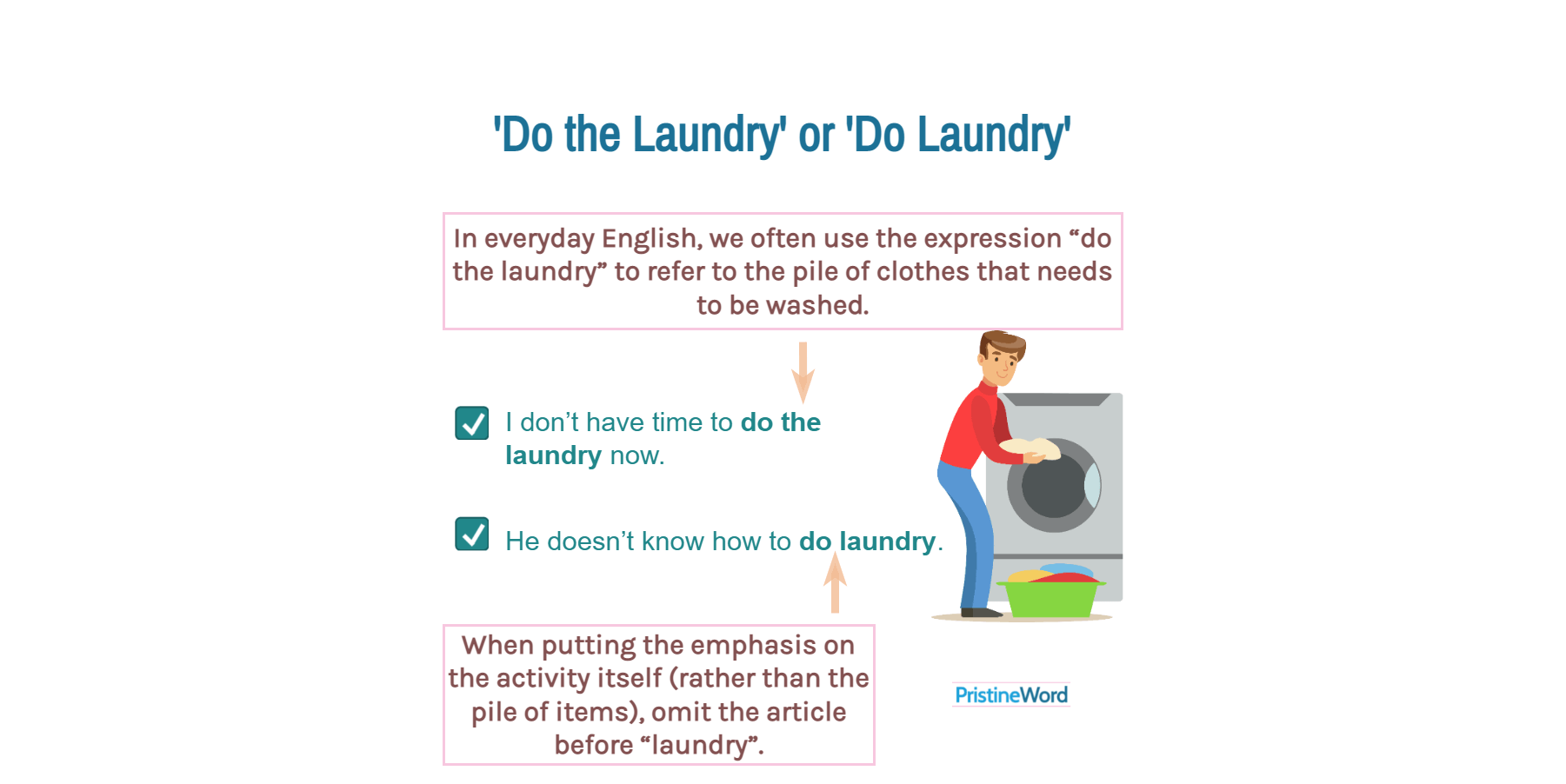 In everyday English, we often use the expression “do the laundry” to talk about managing the pile of clothes that needs to be washed.
