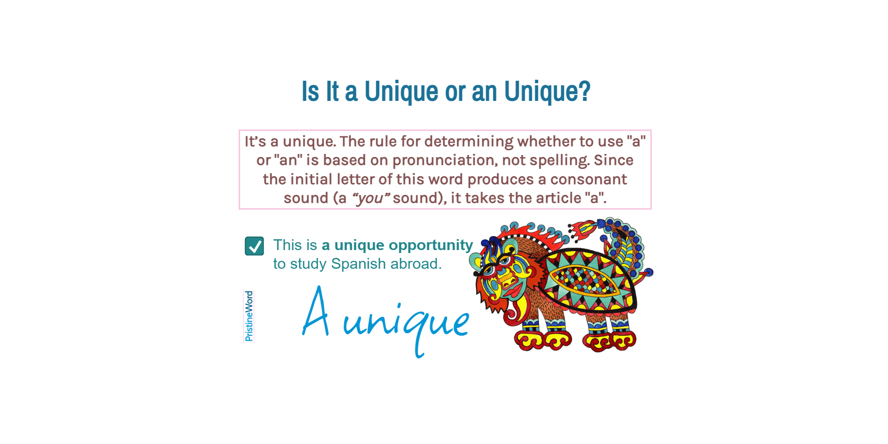 It’s a unique. The rule for determining whether to use “a” or “an” is based on pronunciation, not spelling. Since the initial letter of the word unique produces a consonant sound (a “you” sound), it takes the indefinite article “a”.