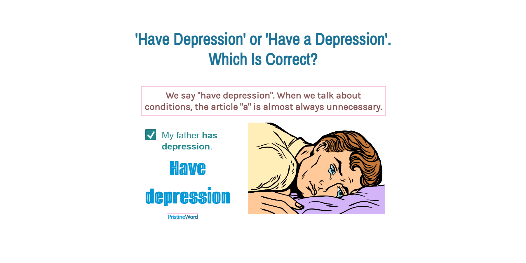 When using the word depression as an adjective, add the article a/an, or another determiner, according to the usual rules.