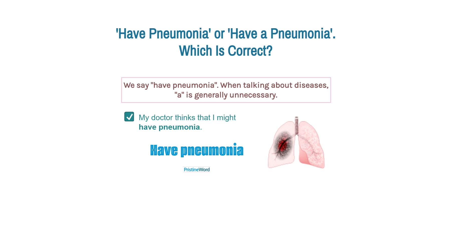 But you can use the possessive pronouns (my, your, his, her, our, your, their) before "pneumonia".