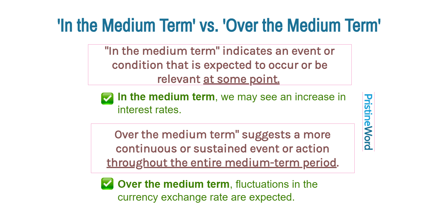 "Over the medium term" suggests a more continuous or sustained event or action throughout the entire medium-term period. It implies that the event or condition will persist over the span of the medium term.