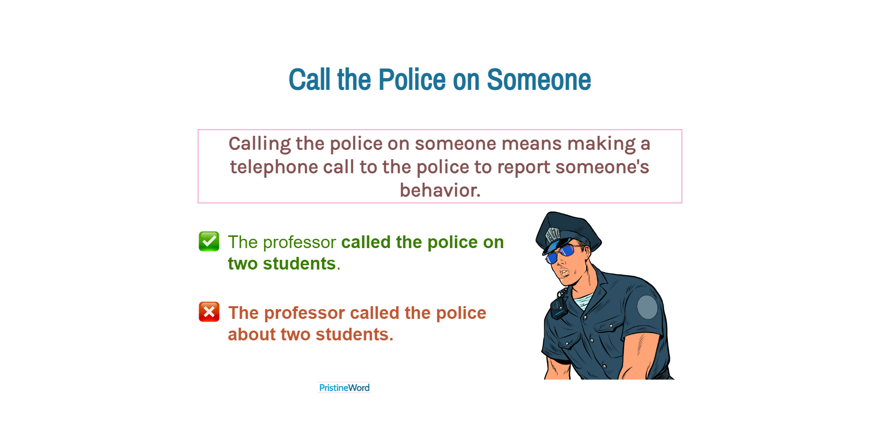 Calling the police on someone means making a telephone call to the police to report someone's behavior.