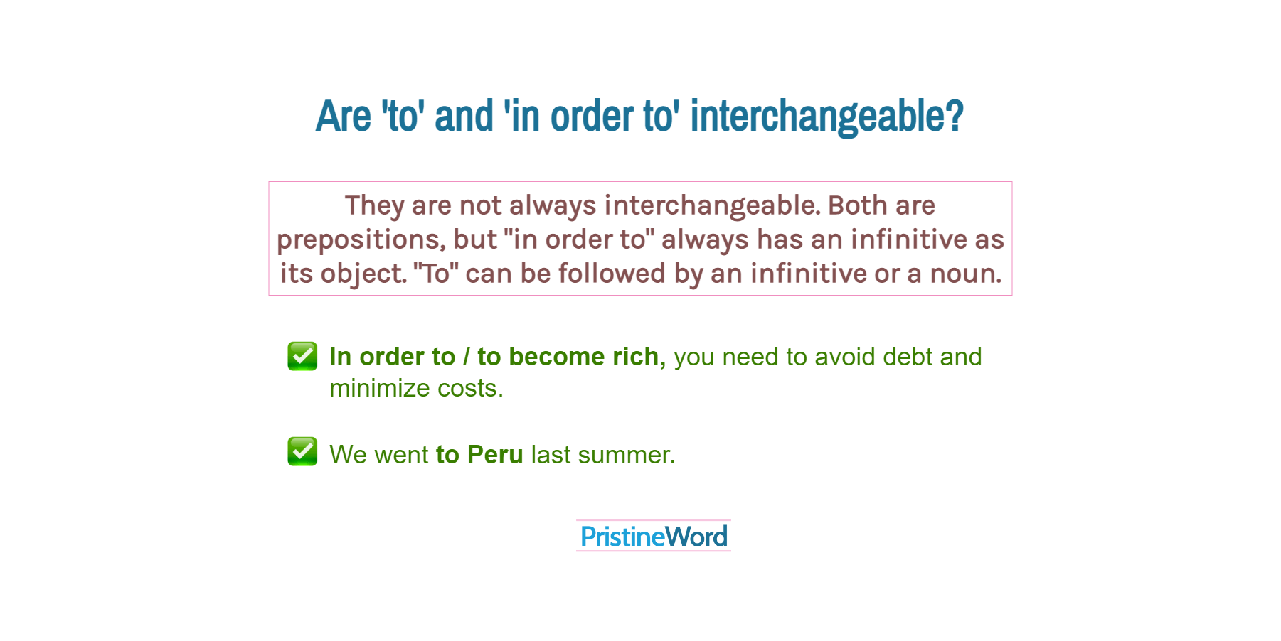 When "to" is used for showing the purpose of an action and followed by an infinitive, it may be replaced by "in order to" in some situations.