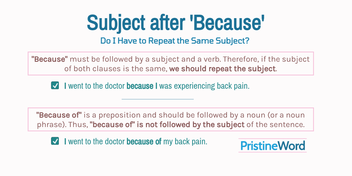 You can follow this strategy before deciding whether to use the same subject after because: