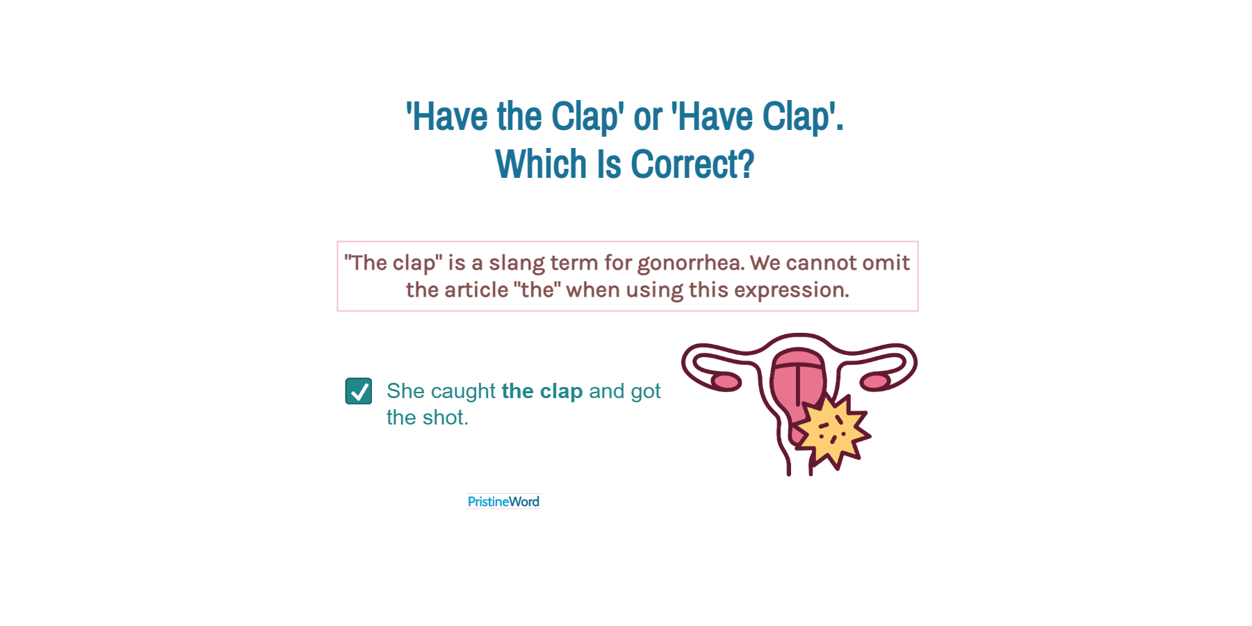 "The clap" is a slang term for gonorrhea, a sexually transmitted disease.