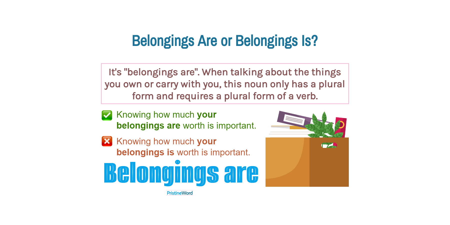 And remember, plural nouns, like "belongings", take a determiner or pronoun in the plural.