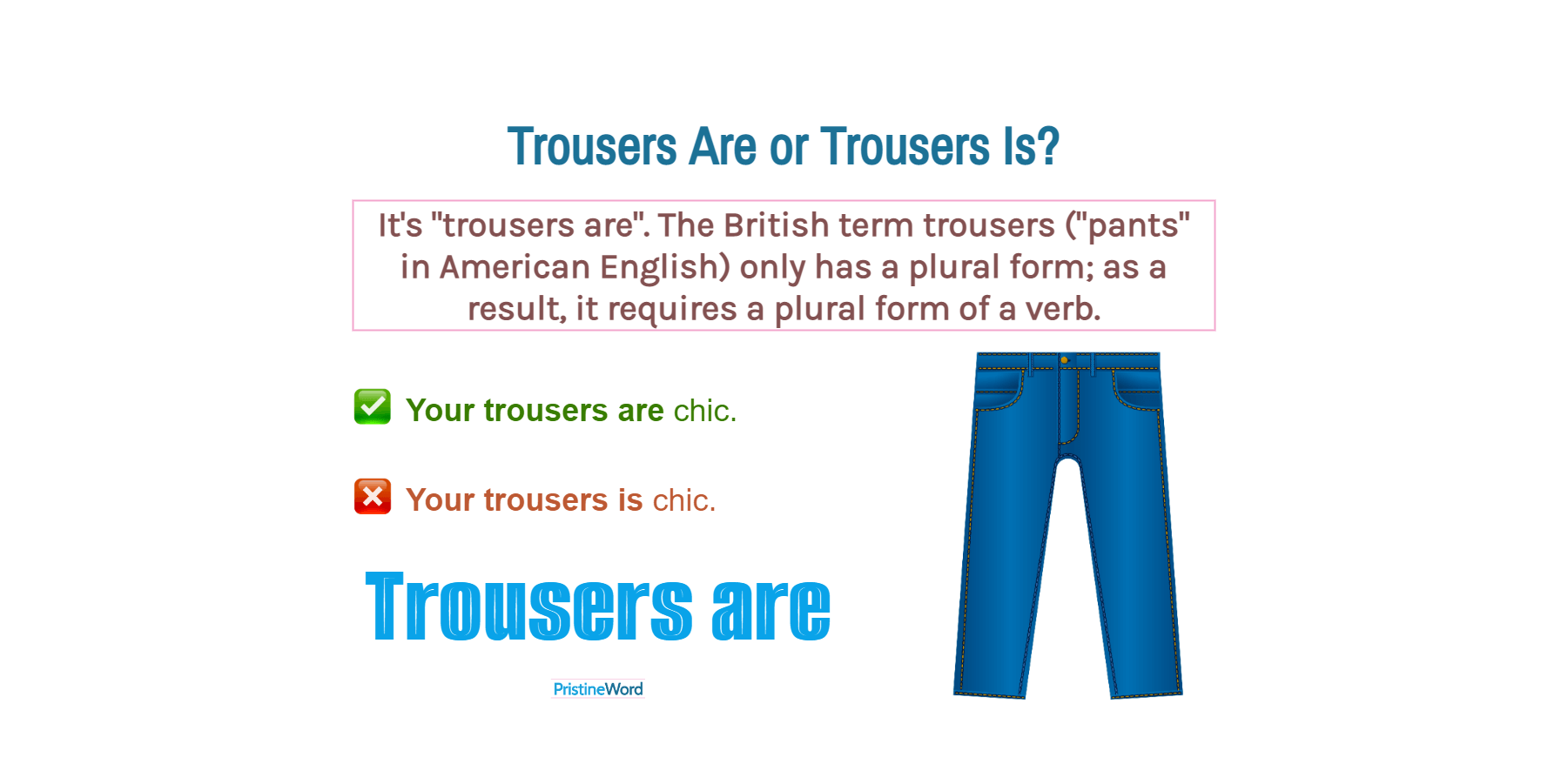 And remember, we always use a plural pronoun or determiner (they, these, those, etc.) with plural nouns, like "trousers".